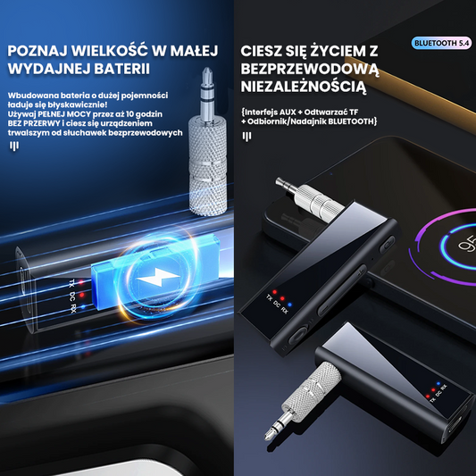 Otwórz się na bezprzewodową swobodę – z Adapterem AUX SmartGadget™ 5.4 PRO każda nuta nabiera życia, a codzienne chwile zamieniają się w muzyczne doświadczenie.